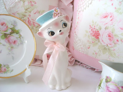 I love your vintage pinks and especially the kitty and the little update you gave her. Just darling! HPS a day late! xoxo Nancy